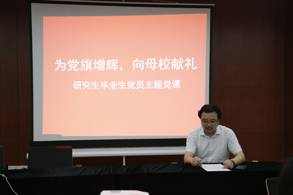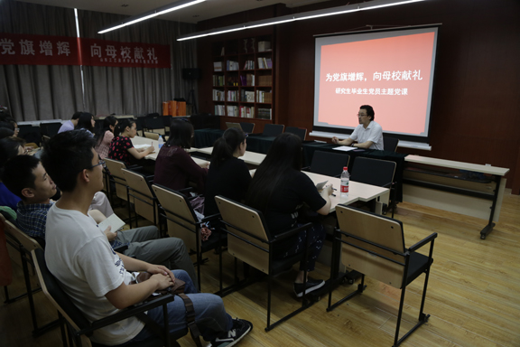 为了加强毕业生党员教育,进一步提升毕业生党员的理论素养,2016年6月8日下午,研究生党支部在永利官网研究生学术活动室开展了“为党旗增辉,向母校献礼”主题党课。本次党课由党总支书记孙磊讲授,全体研究生毕业生党员参加了党课学习。
