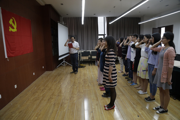 2016年6月8日下午,研究生党支部在永利官网长清校区研究生学术活动室举办了“为党旗增辉,向母校献礼”为主题的重温入党誓词活动。本次活动由党总支书记孙磊领誓,全体研究生毕业生党员参加了重温入党誓词活动。 在孙磊书记的引领下,全体研究生毕业生党员面对党旗举起右手,庄严宣誓,铮铮誓言表达了毕业生党员对党的事业的忠诚。本次活动进一步明确了党员责任,增强了党员的光荣使命感,相信毕业生党员在今后的工作中会更好的发挥党员的先锋模范作用,积极投身实践,为党的事业奋斗终身。