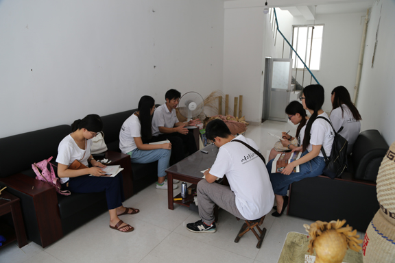 本次活动主要是对东营市垦利县民间传统工艺的老艺人进行调研采访。活动期间,团队成员先后对垦利县黄河口草编、佛头黑陶、虎头鞋、桃木剑4项民间传统技艺的传承人进行了重点采访。被采访的老艺人们不仅详细回答了队员们提出的问题,还现场演示了具体的制作过程,使同学们对其有了更为深入的了解。