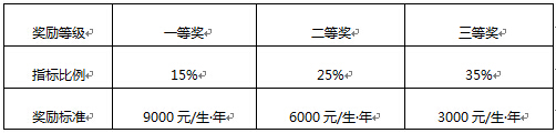 第七条 硕士研究生学业奖学金分为一等奖、二等奖和三等奖三个等次,具体指标比例和奖励标准为: