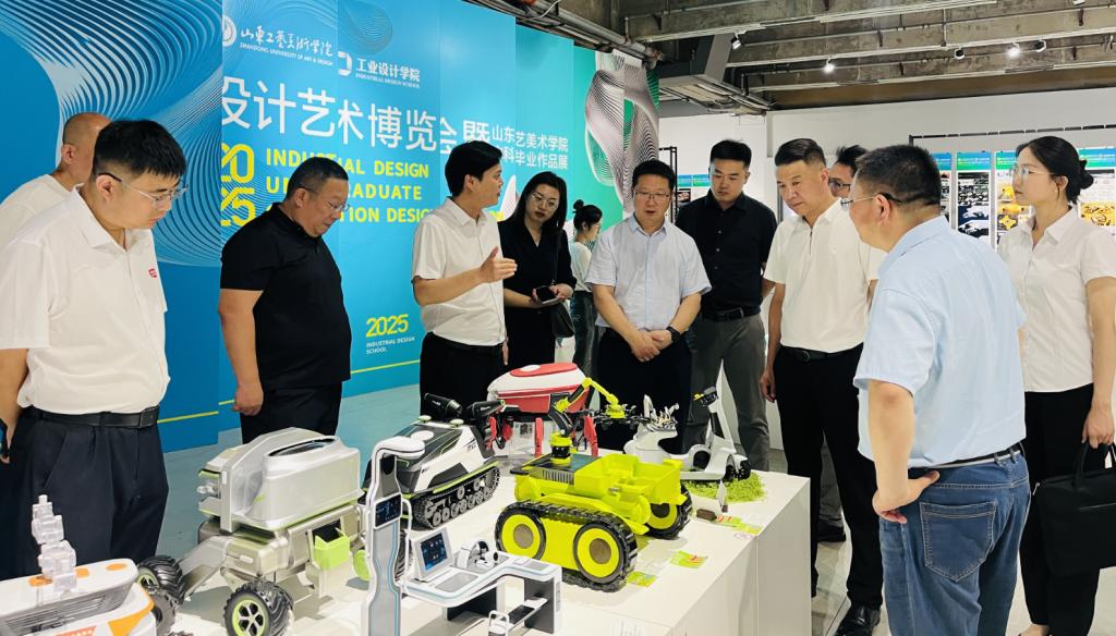 山东省高等教育管理科学研究会产教融合研究院有关负责同志,临空园区企业代表,学校合作发展处、工业设计学院、应用设计学院有关同志陪同参观并参加座谈交流。