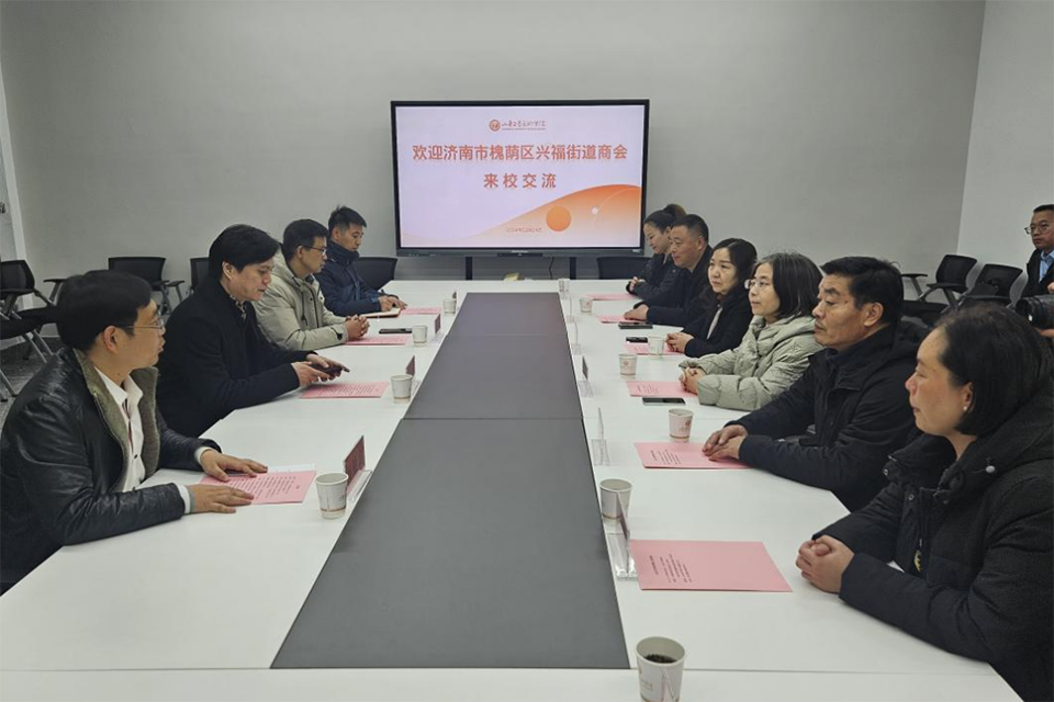 12月24日,济南市“四进”工作组槐荫区第五支队队长张秀娟携槐荫区兴福街道商会一行来永利官网交流合作。合作发展处处长、工业设计学院院长张焱会见来宾并参加座谈交流活动。永利官网文化创意产业园入驻单位代表,兴福街道商会轮值会长、秘书长,济南天朗文商旅商业发展有限公司总经理孙勤富主持交流活动。