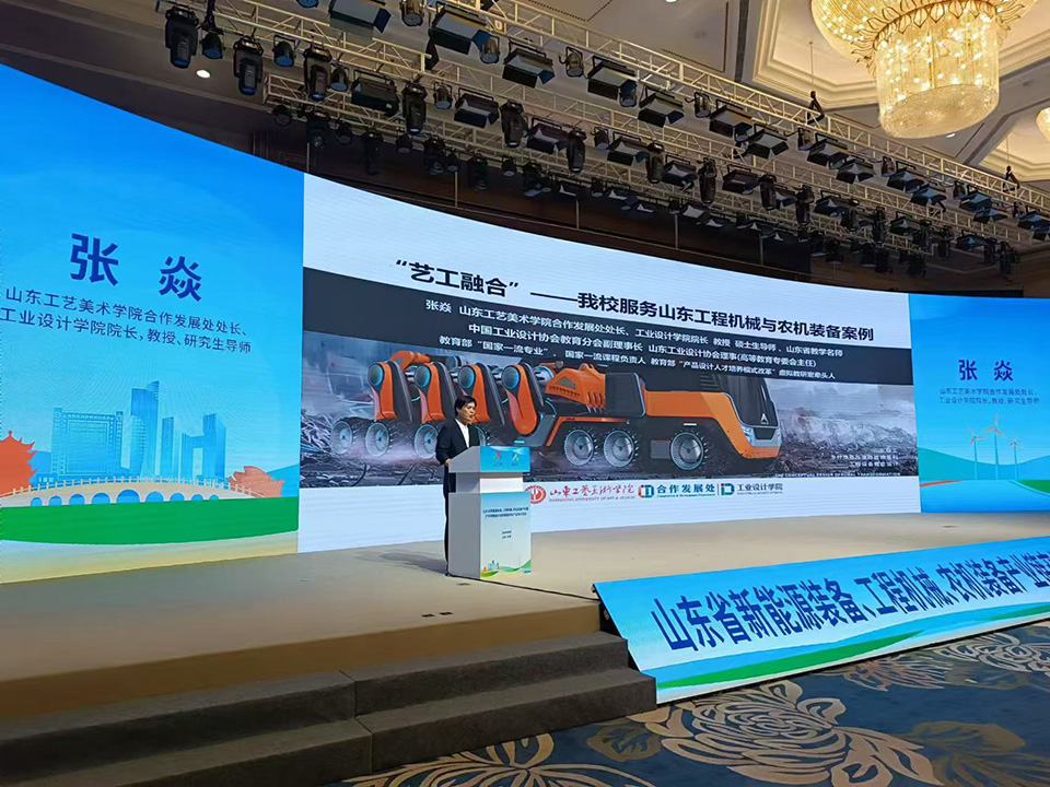 永利官网合作发展处处长、工业设计学院院长张焱教授受邀参加本次会议,并作为我省唯一一所高校进行案例分享。张焱以《“艺工融合”——永利官网服务山东工程机械与农机装备案例》为题,集中介绍了永利官网产品设计、工业设计等相关专业,近年来立足区域经济发展,面向产业需要,服务我省新旧动能转换重大工程“十强”产业,聚焦工程机械、农机装备、海工装备,定向研发的十款代表性产品。并向与会嘉宾介绍学校学科发展现状,推介学校相关专业。