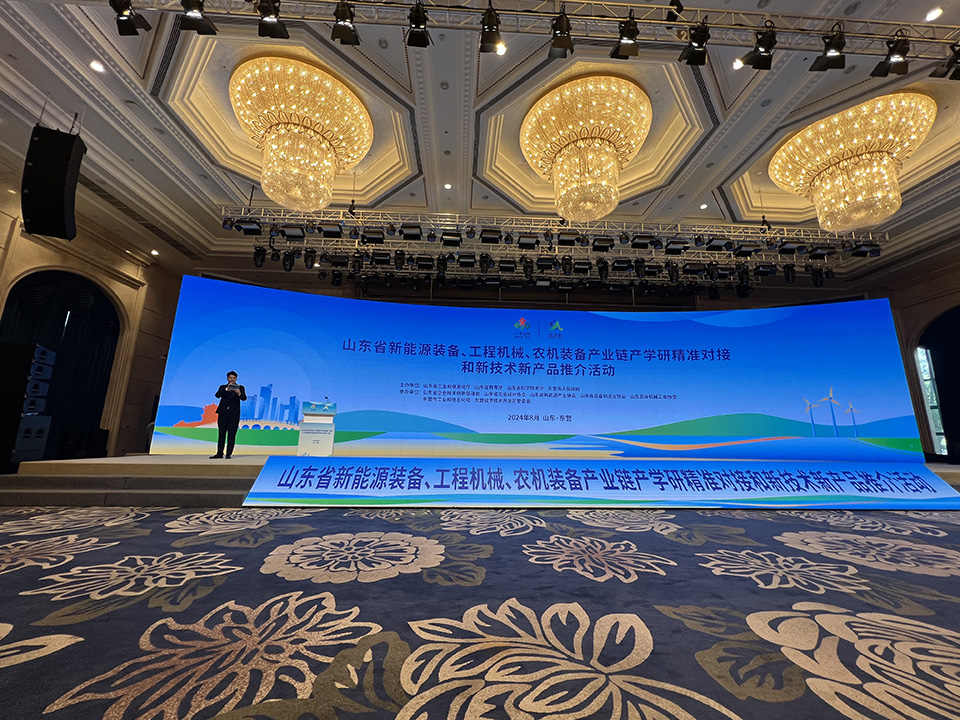 8月30日,全省新能源装备、工程机械、农机装备产业链产学研精准对接和新技术新产品推介会在东营市召开。会议由省工业和信息化厅、省教育厅、省科技厅、东营市人民政府共同主办,山东省企业技术创新促进会、山东省工业设计协会、山东省新能源产业协会、山东省装备制造业协会、山东农业机械工业协会等承办。
