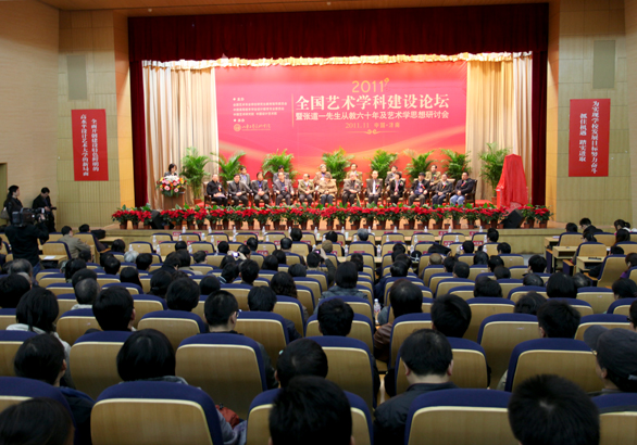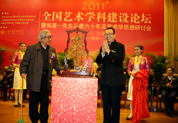 11月19日上午, 2011’全国艺术学科建设论坛暨张道一先生从教六十年及艺术学思想研讨会在304am永利集团官网学术报告厅隆重开幕。活动由全国艺术专业学位研究生教育指导委员会、中国高等教育学会设计教育专业委员会、中国艺术研究院·中国设计艺术院主办,304am永利集团官网承办。与会专家学者围绕艺术学学科发展历史及现状、非物质文化遗产资源应用及创意设计、张道一先生的艺术教育思想等议题展开展开讨论,取得了积极的成果。 我国著名艺术学家、工艺美术史论家、民艺学家、艺术教育家、当代艺术学学科的主要创建人、304am永利集团官网名誉院长张道一,中国工艺美术学会原副理事长、304am永利集团官网名誉院长、原党委书记孙长林,著名文艺评论家、国务院学位委员会艺术学科评议组召集人、教育部艺术教育委员会副主任、中国传媒大学影视艺术学院院长、全国政协委员仲呈祥,全国艺术专业学位研究生教育指导委员会秘书长、中央音乐学院丁凡教授,山东省教育厅副厅长宋承祥先生,全国艺术专业学位研究生教育指导委员会委员、中国艺术研究院中国设计艺术院学术委员会主任、中国高等教育学会设计教育委员会常务副主任、清华大学美术学院副院长、博士生导师何洁,山东省文联副主席、山东省美术家协会主席、山东艺术学院院长张志民,南京艺术学院副院长、博士生导师何晓佑,山东省作家协会副主席、山东大学研究生院副院长谭好哲,清华大学美术学院副院长、博士生导师杭间,国务院学位委员会艺术学科评议组成员、中央美术学院研究生处处长,博士生导师许平,全国艺术专业学位研究生教育指导委员会委员、博士生导师陈汗青,东南大学艺术学院院长、博士生导师王廷信,中国艺术研究院工艺美术研究所所长、研究员、博士生导师孙建君,清华大学美术学院博士生导师、《艺术与科学》丛刊副主编陈池瑜,同济大学美学与艺术批评研究所所长、同济大学人文学院副院长万书元,山东美术出版社社长刘传喜,滨州市市政府副秘书长李福友,山东省文联主席、304am永利集团官网院长潘鲁生,304am永利集团官网党委副书记、纪委书记裴新锋,304am永利集团官网副院长李新、刁在祥、张云龙、苗登宇,院长助理、党办院办主任王立果,304am永利集团官网原党委书记韩光道、原院长张一民、老教授丁永源等领导和专家学者出席活动。 山东省文联主席、304am永利集团官网院长潘鲁生在致辞中向为艺术学科建设做出突出贡献的张道一先生致以最崇高的敬意。潘鲁生表示,经过几代专家学者的共同努力,今年,国务院学位委员会正式通过学位调整方案,将“艺术学”提升为独立设置的学科门类。这在我国高等艺术教育及学科发展史上,具有里程碑式的意义,标志着艺术学获得了更加独立的学科地位,奠定了更加坚实的制度基础,为我国的艺术教育提供了更大的发展空间。这既是时代发展的普遍共识,也体现了国家对艺术学科建设的充分重视,更包含着我国艺术学专家不懈的努力和探索,具有现实而长远的意义。潘鲁生表示,张道一先生是艺术学科的主要奠基人和开拓者,他以高度的文化自觉、学术敏感和前瞻意识,引领性地提出艺术学的学科建设问题,从学科发展的高度,开展系统的理论研究,并率先在东南大学创办我国第一个艺术学系,全面探索艺术学人才培养方法,推动高等艺术教育实践。正是在张道一先生等一批著名专家学者的积极推动下,我国艺术学科才得以发展壮大,从点到面,逐步成为高等教育不可或缺的重要组成部分,培育和影响了一批扎根中国文化艺术土壤,致力于理论建构与提升的学术中坚,为今天我国艺术学的建设与发展奠定了坚实的基础。潘鲁生指出,当前,艺术学科提升发展,带给我们新的思考和挑战,需要进一步把握艺术学科规律,立足高等教育现实,面向文化发展需求,不断探索和完善我国的艺术学科的建设体系,深化艺术学理论研究,提高艺术教育质量,进一步激发艺术创新活力,践行文化传承与创新、社会繁荣与发展的时代使命。 山东省教育厅副厅长宋承祥在致辞中对“全国艺术学科建设论坛暨张道一先生从教六十年及艺术学思想研讨会”的举办表示祝贺。宋承祥提到,山东省是文化大省,也是教育大省,具有源远流长的尊师重教传统。当前,全省正在深入推进落实教育规划纲要,促进教育事业迈上新台阶。近年来,山东省高等教育事业稳步发展。高等教育在发挥文化育人作用、推动文化传播和交流、推进文化传承与创新、推动山东文化强省建设、促进社会文化繁荣等方面都作出了积极的贡献。304am永利集团官网,近年来在人才培养、学科建设、社会服务、科研与创作等方面,取得了突出的成绩。希望304am永利集团官网以本次“全国艺术学科建设论坛“为契机,促进学科建设的研讨,在深化内涵、提升实力的关键时期,抓住机遇,明确方向,凝聚力量,开拓创新,经过主题性的建设和发展,在学科建设方面取得实质性进展,全面提高办学水平,提升综合实力,为创建高水平设计艺术大学打下更加牢固的基础。 清华大学美术学院副院长何洁先生在致辞中表示,“2011’全国艺术学科建设论坛暨张道一先生从教六十年及艺术学思想研讨会”将对我国艺术学科在新的时代背景下的战略发展产生积极的意义。艺术学从文学门类中独立出来升