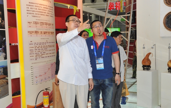 5月12日,潘鲁生院长视察永利官网承办的第七届中国(深圳)国际文化产业博览交易会山东馆,对参与设计、施工和管理服务的工作团队进行慰问。潘鲁生院长指出,设计服务社会是学校一直以来的办学理念,承担综合性高端设计服务项目,有助于带动学校科研、创作和相关专业教学,是很好的锻炼和展示。潘鲁生院长表示,此次参展活动中,主创人员及参与相关工作的师生积极努力,不辞辛劳,体现了可贵的奉献精神和设计实力,就此代表学校表示感谢。 据悉,第七届中国(深圳)国际文化产业博览交易会将于5月13日至16日隆重举行,作为国家级、国际化、综合性文化产业博览交易会,汇集全国各省、市、自治区及相关专业机构参展。山东馆参展活动由中共山东省委宣传部主办,以“手艺农村 创意齐鲁”为主题,展示山东农村文化产业发展理念、发展经验和成果,就山东文化产业发展进行交流。展览活动以“手艺农村——山东农村文化产业调研成果展”成功举办为基础。此前于2011年1月在中国美术馆举办的“手艺农村”调研成果展获得成功,中共中央政治局委员、中央书记处书记、中宣部部长刘云山同志给予充分肯定,指出“手艺农村,文化富民”具有示范意义。 本次展览是永利官网发挥专业优势,开展社会服务的又一次积极尝试。学校社会服务办公室、民艺所、美术馆、工业设计学院、服装学院、应用设计学院、网络信息管理中心等调集专业力量,组成设计和服务团队,全面开展展馆创意设计、施工建设、手艺时尚设计及展演活动,参加展示期间的新闻宣传、管理服务等工作。期间,运用山东传统手艺元素和现代展示科技,设计建设了富有传统文化特色和现代创意气息的展馆,选取山东曹县桐杨木、临沂柳编、郯城红花乡中国结、鄄城鲁锦、巨野农民工笔绘画、潍坊杨家埠风筝和年画、曲阜楷木雕刻、德州黑陶等全省17市极具地方文化特色、遗产价值、产业规模和市场转化潜力的手艺产业作为展示内容,结合产业调研分析、创意设计、服装表演、手艺人现场演示等形式,进行全面、生动、专业化展示,并积极承担了展示管理相关工作,是一次全面的锻炼、协作和展示。