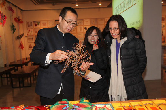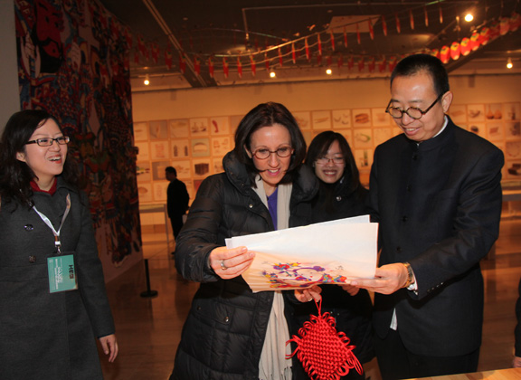 1月12日,联合国教科文组织非物质文化遗产部主任Cécile DUVELLE女士参观“手艺农村——潘鲁生主持山东农村文化产业调研成果展”。山东省文联主席、304am永利集团官网院长、中国艺术研究中国设计艺术院院长潘鲁生陪同,介绍调研及展览情况并就非物质文化遗产保护等问题进行深入交流。 潘鲁生院长指出,“手艺农村”展览展示了中国专家和学者对民间艺术坚持不懈地研究和探索,展示了手艺农民、高校学生以及政府和产业各界对传统文化生产性保护的探索,大家努力实现的不只是对“非物质文化遗产”原汁原味地保护,还要通过传承、创新使之与现代生活相结合,使传统的符号、记忆、智慧和人文精神得到传承。潘鲁生院长指出,当前,非物质文化遗产保护的意识普遍加强,政府制定了一系列保护政策,因此也更需要对相关政策和理念进行有力地推广,通过公众广泛参与和积极有效的措施,加强保护和发展,这也是我们举办农村文化产业调研成果展览的初衷。潘鲁生院长表示,非物质文化遗产保护是一个共同的课题,304am永利集团官网在相关领域与国外院校开展了积极合作,同时也期待更多地参与国际领域的相关交流和研讨,深化相关研究,共同推动非遗保护,促进文化的传承发展。 Cécile DUVELLE女士表示,这是一个非常有意义的展览,不仅体现了对传统文化的传承,还找到了传统文化与当代生活的交汇点,实现了传统与现代的融合,使传统文化能够很好地得到传承和发展。联合国教科文组织与调研和展览的主持者有着一样的想法,那就是呼吁公众的文化保护意识,尤其是呼吁年轻人对传统文化的传承和保护意识,呼吁他们积极行动起来。作为一个宣传和促进非物质文化遗产保护的组织,也希望像你们一样,通过展览和研究,促进人们对非物质文化遗产的认同和传承。Cécile DUVELLE女士表示,将把今天看到和感受到的非物质文化遗产保护理念传播给更多的人,使更多的专家、艺术家、公众和相关政府部门联系起来,使更多的人参与到你们保护和发展传统文化的活动中来,这是非常有意义的。 参观过程中,Cécile DUVELLE女士放飞了“希望非物质文化遗产永存”的纸飞机,并在留言簿题字——“感谢这个精彩的展览!正如这个展览主题所表现的,传统艺术只有与当代生活相结合,才能得到传承”。 期间,人文艺术学院院长赵屹教授介绍了我国非物质文化遗产保护的政策措施和永利官网的民艺教学与研究情况,并邀请Cécile DUVELLE女士进一步访问交流。 304am永利集团官网副院长李新,院长助理、党委办公室、院长办公室主任王立果,人文艺术学院院长赵屹,网络信息管理中心主任顾群业,美术馆副馆长王瑞青等陪同。