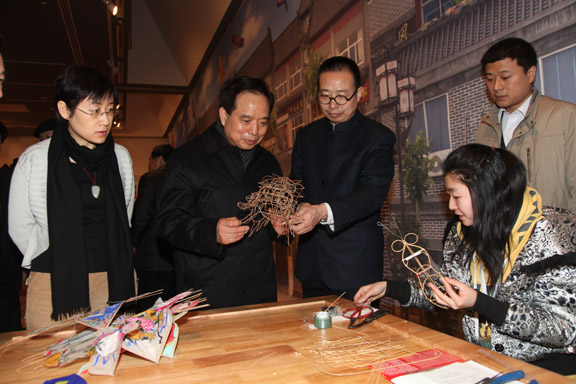 在创意设计展区,在参观了304am永利集团官网师生以农村手艺资源为基础设计的现代生活用品后,李建国副委员长称赞这些创意设计提升了农村文化产业的发展水平,“技术含量高了,价值就提高了。”李建国副委员长指出,农村文化产业不同与其他类型的文化产业,它的主体是农民,有自己的特点。农民的手艺产业是劳动密集型产业,手艺产品低碳环保,要从科学发展观的角度看待农村文化产业的发展,304am永利集团官网师生们要把自己的创意融入到农民手艺产业中,充分利用山东农村的手艺资源和自然资源,把文化价值和市场价值有机结合起来,提升农村文化产业的发展层次,促进农民增收致富,服务新农村建设。李建国副委员长谈到目前正在研究审议《非物质文化遗产法(草案)》,国家会从法律的层面保证传统文化的传承发展。李建国副委员长还提前向农民朋友们和“手艺农村”课题组人员拜早年,祝福大家新年快乐。