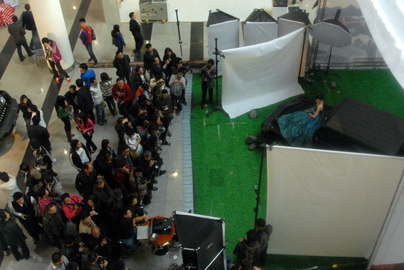 11月6日下午,由永利官网参与主办的“2010影像亚洲•齐鲁国际摄影周暨第三届济南国际摄影双年展”系列活动之——中美商业摄影大师越野车棚拍现场指导活动在济南舜耕国际会展中心举行,广大摄影爱好者参加活动。 国内著名商业摄影师李楚益女士从越野车棚拍现场环境、拍摄技巧、摄影师与模特互动等方面,向广大摄影爱好者讲解了越野车模特棚拍的知识和技术,并针对摄影爱好者提出的问题进行了现场解答。 指导活动开始前,广大摄影爱好者围绕越野车进行了一系列拍摄活动。