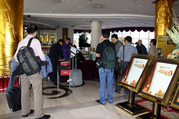 在庆中秋、迎国庆这喜气洋洋的日子里,永利官网喜迎2010影像亚洲·齐鲁国际摄影周·第三届中国济南国际摄影双年展各位专家评委的到来。9月23日上午,国际摄影专家评委陆续抵达永利官网,永利官网在专家下榻的名仕学府大酒店专门设立了接待处负责接待工作。 为了使专家评委能够顺利到达永利官网参与评选工作,永利官网积极组织引导小组,对专家的注册以及衣食住行等方面进行了合理安排,为专家评委们的入住和出行提供便利的条件。 在相关工作人员的帮助下,摄影专家们顺利入住名仕学府大酒店。专家们对永利官网引导小组以工作人员的热情招待给予很高评价。