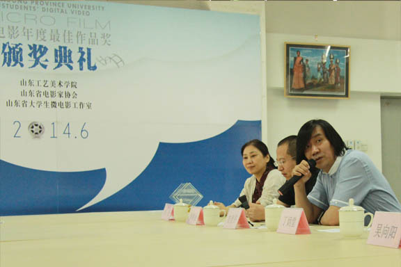 吴向阳主持本次颁奖典礼。他介绍了山东省大学生微电影工作室的运行情况,以及设立“微电影年度最佳作品奖”的积极意义。山东省大学生微电影工作室由山东省委宣传部、山东省电影家协会于2011年12月设立,三年来取得了长足进步和良好的社会影响力。从今年开始,为优秀的微电影作品颁发年度最佳作品奖,以鼓舞和激发大学生及青年教师的创作激情。