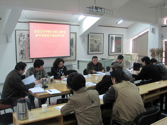 根据省教育厅关于切实做好特色名校总体建设方案和重点专业建设方案修改论证工作的通知和相关要求,遵循学校统一部署,3月18日上午,造型艺术学院在综合办公楼召开了绘画专业建设方案论证会。参加本次论证会议的人员有教务处处长孙磊、财务处处长胡红宇、人文艺术学院徐思民教授、造型艺术学院院长雷家民、副院长李勇以及绘画专业各建设项目负责人和骨干教师。会议由造型艺术学院院长雷家民主持。 首先,雷家民院长简要介绍了学院的教学管理、科研创新、专业建设情况,并重点介绍了本次绘画专业建设方案的筹备、申报和修订情况以及本次论证的注意事项。李勇副院长对专业建设方案各个环节进行了阐述和说明,对建设方案任务书做了详细的介绍。 其次,专家组就绘画专业建设方案进行了认真评议,就任务书的各项建设任务、经费预算及预期成果进行了热烈讨论,提出了许多建设性修改意见。徐思民教授指出,建设目标的设置应具有可操作性,同时又要与“名校工程”的建设目标相符合;任务书是专业建设的重点内容,也是未来上级部门考核的主要依据,建设进度安排要符合逻辑,逐项深入,前后呼应。胡红宇处长在经费的使用规范上做了说明,同时指出对每一笔经费的使用要根据要求全盘统筹、统一规划。经过论证,专家组一致认为绘画专业建设方案的编制立足行业和区域经济的发展需求,整体框架符合省教育厅相关文件要求,指导思想明确,思路清晰,目标定位准确,具备了较好的建设基础和较强的可操作性。同时就建设方案中存在的问题提出了进一步修改完善的意见和建议。 最后,雷家民院长代表学院对各位专家的评议和论证表示感谢,下一步学院要按照各位专家的论证意见,对每个方案作进一步的修订和完善,使之更具科学性、前瞻性和可操作性,并争取早日付诸实施。