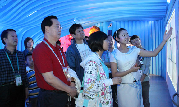 10月2日下午,山东省人大常委会原副主任邵桂芳一行访问世博会山东馆。邵桂芳一行来到山东馆,逐项仔细观看了展品展项的内容,兴致勃勃地在孔子像前留影,他还向馆内工作人员了解了山东馆的各项情况,对山东馆在世博窗口所起到的山东经济文化科技发展新风貌的展示作用与效果,表示赞许,并为山东馆签名题辞。 运营团体各部门成员陪同。