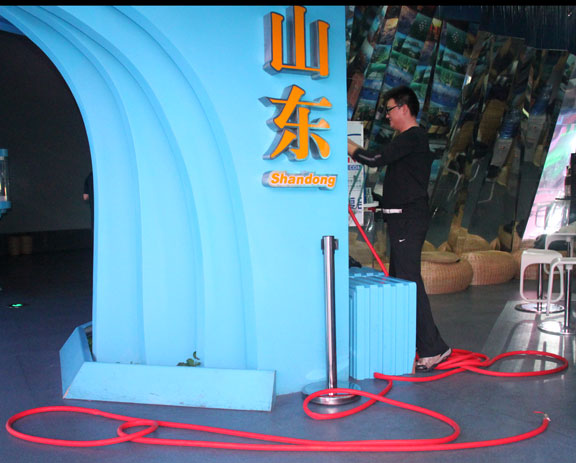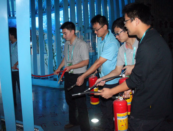 活动首先由山东馆总工程师董新明对全体工作人员讲解场馆内消防器材的设置情况及使用方法,确保工作人员能正确使用消防设施器材。接着进行了现场演练,安保、消防、技术保障、礼仪、值带班人员,根据各自岗位和职能,分别组织进行火灾报警、扑灭火险、疏散人员、抢救物质、情况汇报的等行动。随后董新明就演练活动中的注意事项再次进行了技术性指导。