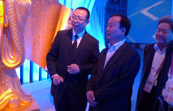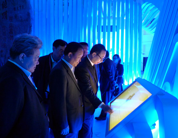 为陈建国书记一行介绍了山东馆“齐鲁青未了”的主题理念,并对展品展项做了详细的讲解。陈建国书记还介绍了世博宁夏馆主题“天赋宁夏,融合之城”,欢迎山东的同志前去参观交流,共同探讨未来城市发展理念。