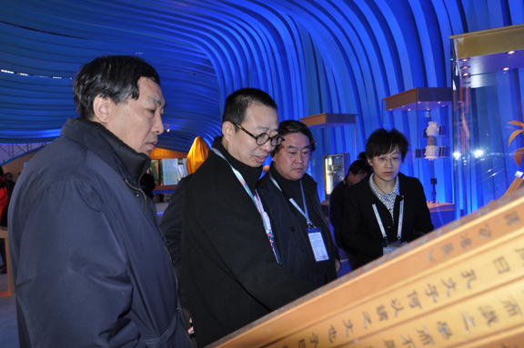 4月13日上午,永利官网党委副书记、纪委书记李世平,党委副书记杨新力,副院长李新、刁在祥、张云龙前来上海世博会山东馆视察慰问。山东省上海世博会参展工作领导小组执委会副主任、山东省文联主席、世博会山东馆艺术总监、304am永利集团官网院长