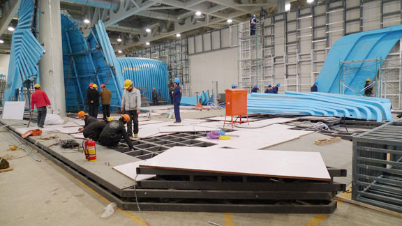 4月3日,黄浦江畔,春日暖阳。上海世博会山东馆施工搭建全面竣工,具备正式运营条件,山东馆璀璨绽放。 翘首以望过去57天漫长而短暂的日子,世博会山东馆项目部全体工作人员在“一馆三地”的工作运营模式下,兢兢业业,发扬精益求精、不畏艰苦的精神,以令人惊叹的“山东速度”在保质、保量、保安全的前提下努力奋战。今日,山东馆施工搭建正式全面竣工,具备正式运营条件。在57个日日夜夜里,世博会山东馆在各界领导关心,社会关注,各施工单位紧密配合,304am永利集团官网统筹部署、全局规划、举全院之力以及在全院教职工的共同关心努力下,才获取今天璀璨辉煌的累累硕果。 一、领导高度重视 2月5日,世博会山东馆项目部首批工作人员进驻上海。省委书记、省人大常委会主任姜异康,省委副书记、省长姜大明,省委常委、常务副省长王仁元一直关心世博会山东馆的施工搭建工作。省委常委、常务副省长王仁元多次听取世博会山东馆艺术总监、永利官网潘鲁生院长的工作汇报,并从山东馆的施工大局上予以全面部署,统筹指导。常务副省长王仁元,省委常委、秘书长王敏,省委宣传部部长李群,省委常委、省蓝办主任费云良,山东省上海世博会参展工作领导小组执委会主任、山东省副秘书长韩金峰等领导前往上海山东馆施工搭建现场视察,并从施工搭建进度、影片制作、搭建效果、搭建细部调整等多方面予以指导工作。世博会山东馆正式全面竣工,具备正式运营条件,和省领导的高度重视、指导分不开。 二、统筹协调,举全校之力,扛鼎凝聚力量 世博会山东馆搭建工程既是一项政治任务又是一项艺术创新工作,在校党委的坚强领导下,本着天工开物,匠心独运的理念,以高质量、高水平、高标准要求,以“成功、精彩、难忘”的答卷划上圆满句号。304am永利集团官网统筹部署、全局规划、举全院之力,把世博会山东馆搭建工作当做重中之重任务,全力以赴,扛鼎凝聚力量,共创辉煌。 (一)永利官网领导坚守一线,全力靠上 2月16日,世博会山东馆项目部人员全面进驻上海世博园,永利官网潘鲁生院长亲临施工一线,与所有工作人员一起吃住在距离园区最近的便捷酒店,一直在施工搭建现场,与现场工作人员、施工搭建人员同甘共苦,和现场工人一起过节假日、过生日。潘鲁生院长每天在山东馆施工搭建现场一线指挥,多次与世博局领导沟通山东馆现实搭建问题,现场解决施工搭建难题,并统筹指挥上海、北京、济南施工布展工作,多次往返于三地指导工作。总指挥苗登宇副院长一直坚守在施工搭建现场,协调指挥,并在潘鲁生院长的调度下,多次往返于北京落实展品展项具体工作,往返济南落实影视制作、平面制作等工作。 (二)统筹部署,全局规划 自进驻上海世博园以来,学校党委、行政十分关心世博会山东馆建设工程,多次召开党委会,院长办公室研究布置工作,党委书记于茂阳等学校领导现场慰问一线参展专家和教职工。世博会山东馆项目部根据施工搭建需要,调整组织机构,以“一馆三地”—上海,山东馆施工搭建现场;北京,展品展项制作,影视及后期制作;济南,影视制作、纪念品制作、平面制作的工作运行模式展开,三地分别统筹协调,密切合作。为此,世博会山东馆项目部: 1、建立严谨的组织结构框架 世博会山东馆项目部建立了领导小组、艺术总监、现场指挥部、工作六个分项小组、综合协调办公室为主的组织框架,统筹协调,落实责任,分项到人。其中,领导小组:一位总指挥,三位副总指挥;艺术总监;现场指挥部:一位现场指挥副总指挥,现场指挥办公室;六个分项小组:设计组、工程组、文案组、展品展项组、影视组、投资合同组;一个综合协调办公室:办公室主任、办公室副主任、秘书、影视摄像、司机等行政、后勤保障人员。 2、建立规章制度,群策群力,会议落实解决问题 世博会山东馆项目部建立严谨的会议制度、情况通报制度、工作交接制度、请示报告制度、责任分工制度、安全责任制度、财务后勤报销制度等,明确责任职能,保障工作运转的有效进行。 针对施工搭建中出现的问题,世博会山东馆项目部群策群力,现场召开调度会,现场解决问题。自施工搭建以来,项目部累计召开各种会议70余次,出具工作联系单185份。 3、全局规划,统筹部署,把握重要时间节点,保进度 世博会山东馆工程是一项错综复杂、浩大的工程,不仅需要全局规划,更需要做好时间规划,并按照进度有序落实。世博会山东馆项目部协调各施工单位,就工程总体量、工程进度、工程责任人等问题进行协商,确定了: 五个重要施工搭建时间节点。第一,2月5日至2月13日,前期工作人员进驻上海,山东馆地台搭建与布线启动;第二,2月16日至3月5日,山东馆框架搭建竣工,标志性展项完成;第三,3月6日至3月14日,主体框架搭建完成,影视制作、展品展项工作基本完成;第四,3月13日至3月25日,内部施工与影视制作、展品展项大会战;第五,3月26日至4月1日,整体调试完成。五个重要施工搭建时间节点的规划,保障了世博会山东馆整体搭建的顺利完成。 山东馆主体框架复杂,展品展项多,科技含量高、标准要求高,施工工期紧。一方面,世博会山东馆项目部制定施工责任书,有检查、有验收,层层把关,环环相扣。另一方面,要求各公司派精干力量,严格培训,投入建设者共计100余人,克服运输、用电、消防、安保等现