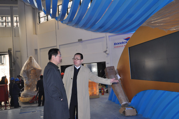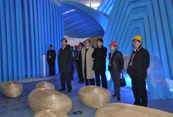 3月27日上午,山东省世博会参展工作领导小组执委会副主任、省政府党组成员、省蓝办主任费云良,山东省上海世博会山东馆参展工作领导小组执委会主任、省政府副秘书长韩金峰,山东省上海世博会参展工作领导小组办公室副主任曲东涛,山东省省委宣传部副部长徐向红到世博会山东馆施工搭建现场审看主展厅影片。山东省上海世博会参展工作领导小组执委会副主任、山东省文联主席、世博会山东馆艺术总监、304am永利集团官网院长