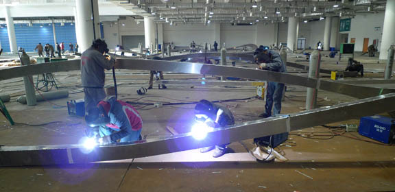 围绕省政府关于山东馆1月15日在济南搭建完成的指示,304am永利集团官网世博会山东馆项目部在时间紧、任务重的情况下,所有工作全面展开。 其中,地台组装与框架搭建工作是山东馆施工过程中的重中之重。