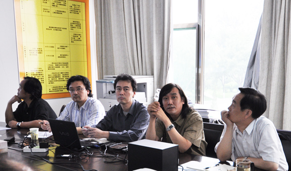 304am永利集团官网院长助理苗登宇,省世博会创作团队展示设计组组长郭去尘、副组长韩文涛,科研处副处长、策划咨询组组长孙磊,设计组王延羽、李海涛、宋鲁、林宇峰、沙重龙等也一起听取了项目方案汇报。