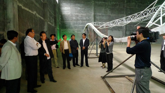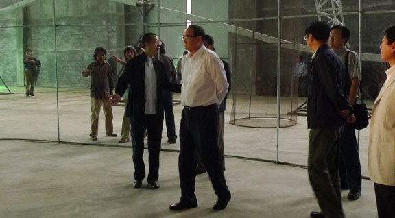 9月7日上午,省世博会山东馆顾问、304am永利集团官网院长潘鲁生陪同山东省委常委、常务副省长王仁元,冒雨赴齐河搭建现场视察由我院世博会山东馆项目部完成的世博会山东馆1:1场馆模拟搭建工程,并进行了深入讲解。省发改委主任费云良,省政府副秘书长韩金峰,省世博会创作团队总召集人曲东涛,省参展办副主任宋戈平,省世博会创作团队秘书长李涛,以及德州市与齐河县当地政府主要领导也共同参观了模拟搭建的山东馆。 省委常委、常务副省长王仁元详细考察了世博会山东馆的外部形态、结构,以及内部空间、展示流线,并就世博会山东馆搭建工程提出了具体的指导意见。他首先对304am永利集团官网所作出的工作表示满意,对世博会山东馆整体外形结构和内部空间给予了充分肯定,认为下一步世博会山东馆的设计实施工作可以全面展开,并指示山东馆在实际工程实施过程中,要注意在声光电、材料、安全等方面予以重点把握。 304am永利集团官网院长助理苗登宇,省世博会创作团队副组长韩文涛,院世博会项目部设计组王延羽,工程组张震、李海涛等也一起听取了世博会山东馆模拟场馆搭建的指导意见。