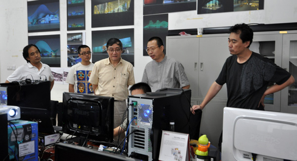 8月21日下午,上海世博会中国国家馆展示总设计师、中央美术学院院长、博士生导师潘公凯等来永利官网世博会山东馆项目部参观考察,潘鲁生院长接见了潘公凯一行。 潘鲁生院长首先向潘公凯一行介绍了世博会山东馆项目部组织、工作进展情况以及目前取得的成果,并观看了世博会山东馆设计方案。双方围绕设计主题进行了深入和广泛的交流。 潘公凯院长对世博会山东馆设计方案给予了充分的肯定,同时就山东馆内部空间整体照明等提出了相关建议。潘公凯认为世博会山东馆的设计外形比较突出、线条优美;主题立意深刻,特色鲜明,区别于一般省馆形态;内部空间设计主线明确,连贯性较强。 参加设计方案交流的还有山东省世博会创作团队展示设计组组长郭去尘、副组长韩文涛、学校美术馆副馆长王瑞青、设计组王延羽、李海涛、沙重龙、林宇峰、单大鹏等。