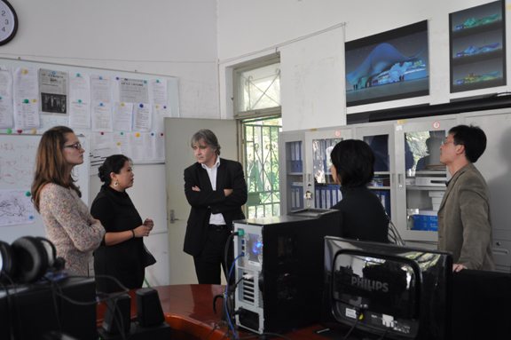 10月22日下午,应永利官网潘鲁生院长邀请,国际设计艺术院校联盟主席、法国南特设计学院院长克里斯丁•格勒林,法国南特设计学院驻青岛代表莫德•安德丽娅•彼德特,法国南特设计学院教师傅博南一行参观访问永利官网世博会山东馆项目部。 法国南特设计学院院长克里斯丁•格勒林等一行首先观看了永利官网世博创作团队设计的2010年世博会山东馆展示设计方案宣传片,并仔细询问展馆结构、材料、内容主题等,在观摩了世博会山东馆设计模型后,对世博会山东馆设计方案表示赞赏。然后双方就世博会山东馆设计方案进行了交流。法国南特设计学院院长克里丁•格勒林期待着在2010年上海世博会期间能够亲自参观世博会山东展馆。 陪同参观的有工业设计设计学院院长彭冬梅、副院长韩文涛、世博会山东馆展示设计组王延羽教授、工程组李海涛副教授。