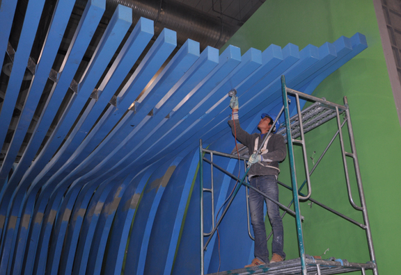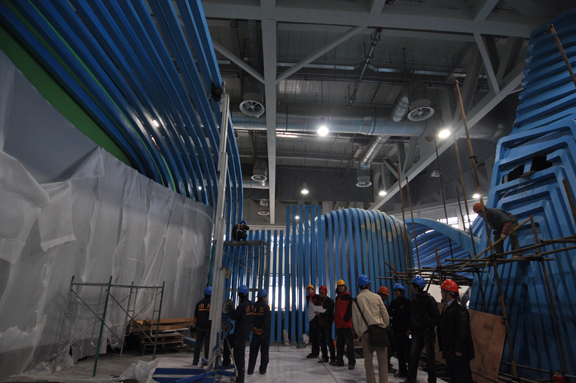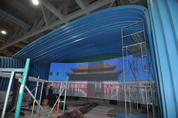 潘鲁生亲自指挥下将全部安装完毕,影院调试也已基本完毕。下午,主展厅影院将进行影片调试。