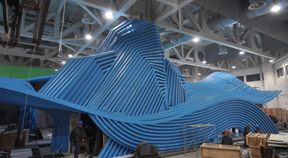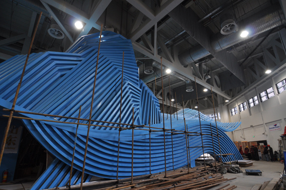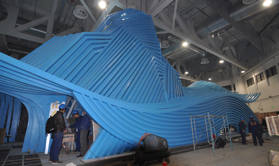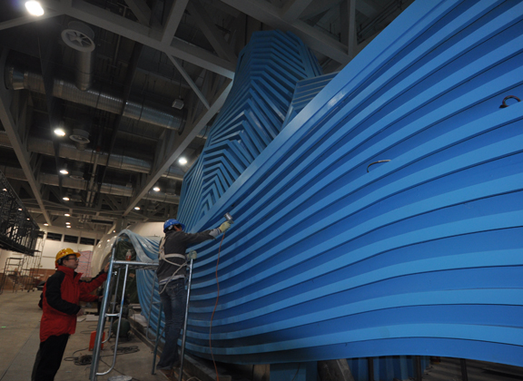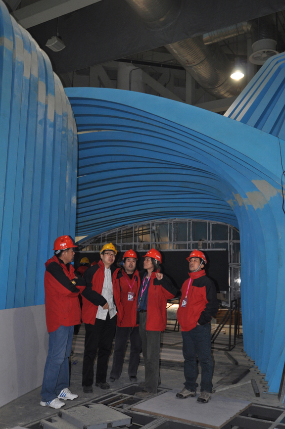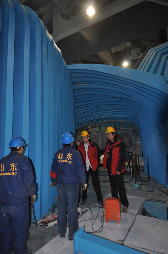 此次喷漆结束之前,世博会山东馆脚手架已陆续拆除。喷漆结束后,山东馆以其独特的造型、清新靓丽的面貌亮相上海世博园各省、区、市馆。今日,主展厅影院上方波形管在世博会山东馆艺术总监、304am永利集团官网院长