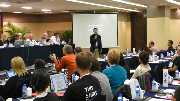 在为期两天的会员大会上,与会代表通过了国际平面设计协会联合会2007-2008年工作报告、财务报告和审计报告。会议对《国际平面设计协会联合会(ICOGRADA)组织章程》进行了补充修改,选举产生了2009-2010年际平面设计协会联合会执行委员会成员。来自澳大利亚的原国际平面设计协会联合会副主席罗塞尔•肯尼迪(Russell Kennedy)当选为2009-2010国际平面设计协会联合会执行主席,中央美术学院教授肖勇当选为联合会执行副主席。新任主席对国际平面设计协会联合会2009-2010年工作进行了展望,并提出了具体的工作方案。