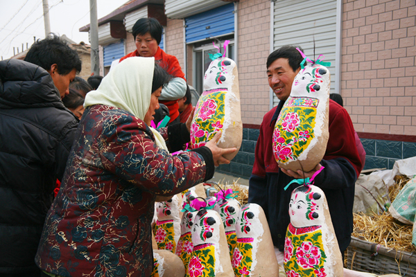 该村的“二月二泥娃娃会”源于明朝成化年间,距今已有300多年历史。泥娃娃以红粘泥为原料,经设计造型、制胚、晾干、摩试、加工、糊纸、涂粉、着色、开眼、涂胶等20多套工序制成,造型简洁,色彩艳丽,极具装饰韵味,深受民间喜爱。课题组成员被娃娃会的热闹景象深深吸引,来自美国的课题组成员更是对庙会上的泥娃娃喜爱有加。他们纷纷表示出对娃娃会这一民间传统节日庆祝活动的喜爱。庙会上,课题组对与娃娃会相关的各种传统习俗进行了采访。