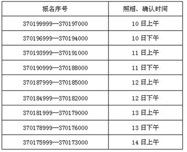 (2)照相并领取信息确认表:凭身份证(或学生证)、交费收据和网上报名号(3757*****)后五位到“照相处”照相,领取打印的信息确认表。