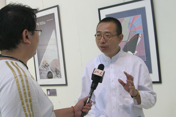 院长在历届奥运海报展展厅内接受了山东电视台的采访。