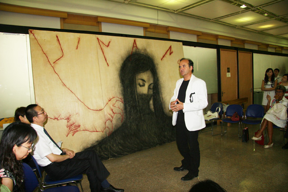 奥马尔·嘉里亚尼是意大利著名的和最具影响力的当代艺术家之一,被誉为“与达·芬奇相似的艺术家”,有“当代艺术魔术师”的美誉。奥马尔以素描为主要艺术绘画语言,尤长木板炭、铅笔画,其独特娴熟的绘画技巧,别具一格的艺术语言风格令在场的每个人为之赞叹。此幅作品是奥马尔·嘉里亚尼先生于15日下午,现场为永利官网创作完成的。