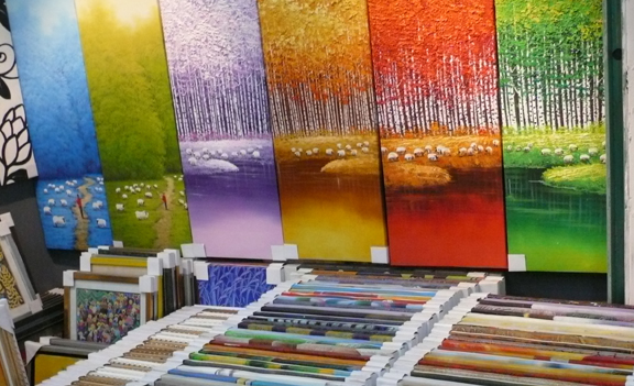 2005年12月,大芬油画村共有油画及各类艺术品经营门店623家,其中从事油画生产和销售的有445家,从事国画、书法创作和销售的有55家,从事画框、颜料等相关配套产品经营的有28家,从事工艺、雕刻、刺绣、装饰及书画培训的共有15家。现已形成黄江油画广场、茂业书画广场、集艺源油画城和大芬卢浮宫四个相对集中的展销中心。另外,以油画及画杠加工为主体的产业工厂有8家,分别分布在龙岗区的坪山、坪地及布吉的坂田、雪象等地。据初步统计,以大芬村为中心,在深圳市从事油画生产的画师、画工及学员最少在8000人以上,而且这一数字还在不断增长。