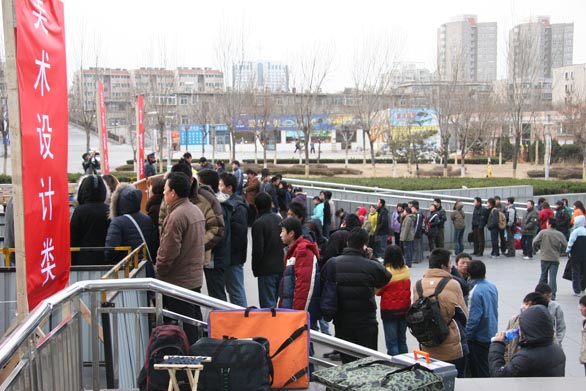 为满足广大考生的需要,缓解因各高校报考时间密集给考生报名造成的不便,增加考生报考的选择性与自主性,我院招生办根据报名工作的具体情况,决定将设计类、美术类的报名日期延长至2月19日,另外,考生可根据自己的实际情况,在2月18日—20日中任选一天作为考试时间。就这一举措,记者随机采访了报名的学生及家长。