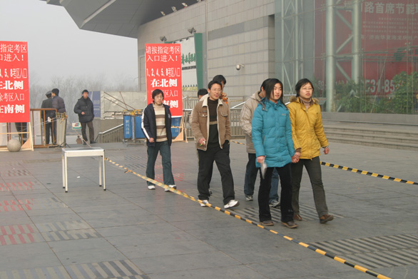 记者还就引导组的工作事宜采访了负责人杜常春老师。他说:“引导组的工作包括报名期间的引导和考试中的督察两方面。为了更大程度地方便考生,分别在会展中心的南、北门放置了醒目的考区分布标识牌,考生在结束报名后可提前得知考场编排信息。此外,在考试期间,还将在舜耕路口增设考场分布标识牌,进一步便利广大考生。”