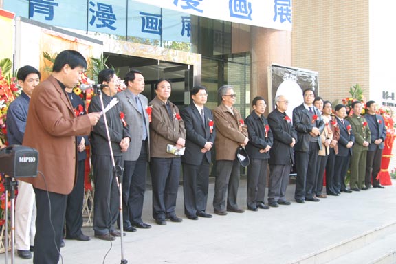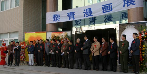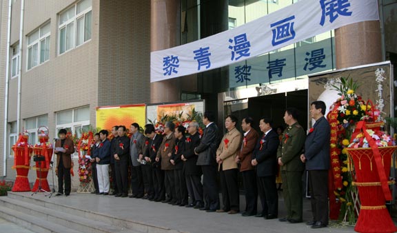 上午10时,黎青漫画展开幕式在304am永利集团官网美术馆前举行,开幕式由304am永利集团官网张云龙副院长主持。中国美术家协会漫画艺术委员会主任、北京市美协主席王复羊先生,山东省委宣传部副部长、省文联主席王凤胜同志,省文联党组书记、省美协主席王承典,济南市委常委、宣传部长王良,省记协主席刘广东,济南市文联主席、市政协副主席、市美协主席吴泽浩,省记协副主席、秘书长张作生,济南市政府秘书长孙晓刚,济南市委宣传部副部长、济南日报报业集团董事长、党委书记周长风,济南市委宣传部副部长杨炳云,济南市人事局局长曹长才,省文联副主席、济南市文联副主席刘玉民,省书协副主席、304am永利集团官网党委书记于茂阳教授,304am永利集团官网院长