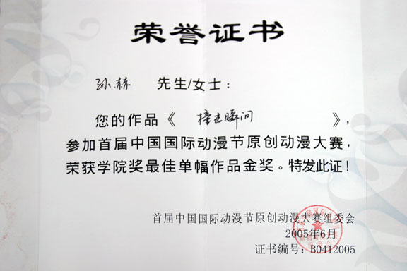我院积极组织动漫爱好者参赛,数字艺术系领导及部分教师还专程带领动画专业毕业生赴杭州观看盛会。日前喜讯传来,我院共有四人获得本届中国国际动漫节奖项。其中数字艺术系03级动画2班孙赫同学的参赛作品《撞击瞬间》荣获首届中国国际动漫节原创动漫大赛学院奖最佳单幅作品金奖。我院学生获此殊荣已引起动漫界人士及各大院校的密切关注,并在全国引起不小的轰动。目前,其他三人的参赛作品正在紧张激烈的评选中,奖项将于今日下午揭晓。
