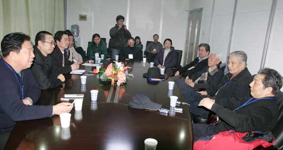 、李新、刁在祥、张云龙及招生办公室的负责人陪同老领导参观了考试现场并向老领导介绍了专业考试的相关情况。参观完毕后,新老院领导在舜耕山庄会展中心展厅会议室举行了座谈。纪委刁在祥书记主持了座谈会。
