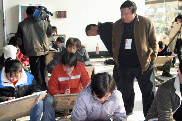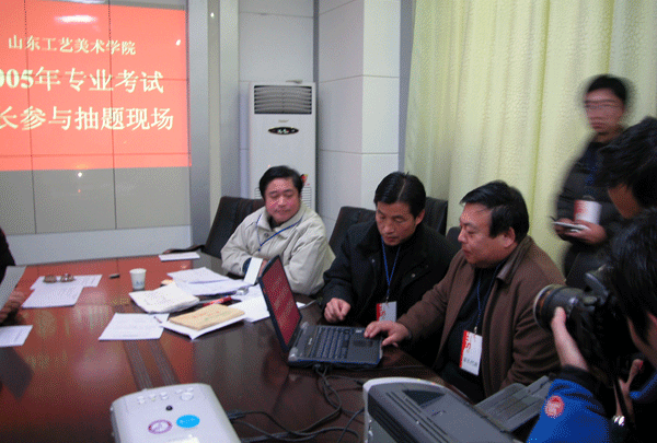 题库进入后,由来自滕州的陈飞利和济南的段国庆两位考生家长代表进行现场抽取试题。今年我院试题库共备有500多套考题,题库由我院面向国内征集试题和自主组织专家所出试题共同组成。