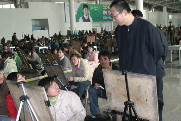 1月21日上午,我院2005年专业招生考试分别在校本部和学院高职教学部进行。其中文理类部分考生约2300余人共分11场在学院教学楼进行,服装表演专业250余人在学院礼堂进行,书法装饰专业共42场约1200余名考生在学院高职教学部参加了专业考试。