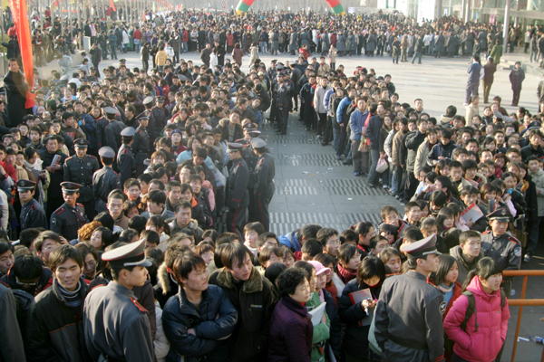 考生们报名、求学的高涨热情驱走了冬日的寒意,不少家长和同学早早地来到了广场,等待着报名的开始。有的考生家长甚至18日凌晨3:00便来到现场等候报名,一位家长说:“孩子的确太累了,为了迎接专业考试放弃了很多休息的时间,作为家长是看在眼里,疼在心里,只要家长能做的事,一定要替孩子办妥,让孩子集中精力备考。”