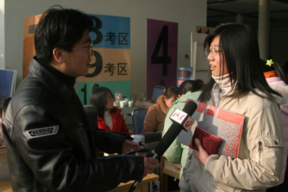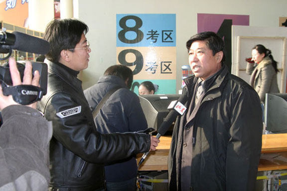 19日下午,山东电视台记者进行了现场采访。我院招生办主任王霞在接受采访中谈到,04年报考我院的考生约18000人,报名比与录取比占到1:10,就当前状况看,比例还会明显提高。报考场面持续火爆的原因在于我院设置的专业方向符合社会发展的需求,新兴的动画专业毕业生很是抢手。目前报考我院装潢艺术设计、应用设计专业的考生居多。众多学子慕名而来报考工艺美院,说明美院的办学成果得到了社会各界的认可。王霞主任还提醒广大考生一定要正确估计自己的实力,考虑是否适合艺术类考试,不要出现赶场、盲目报考的现象。我院出于对考生、社会和学院的负责,真诚地希望广大考生正确认识自己的实力,坚持正确的出发点,量力而为。