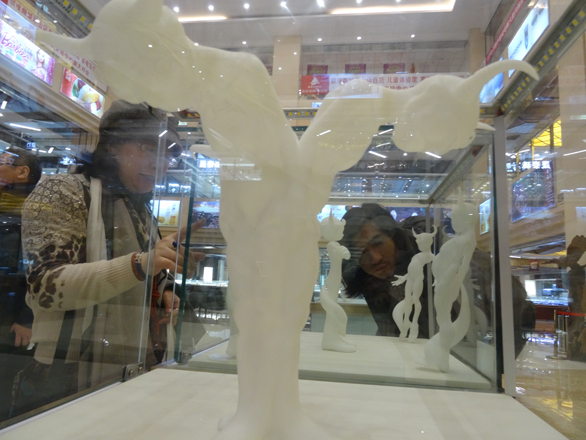 2014年12月24日,一场别开生面的3D打印作品展在银座珠宝交易中心开幕,展出的30件3D打印作品是304am永利集团官网“3D打印工作坊”的教学成果展示。这些3D打印作品为卡通造型,白色表面呈磨砂效果,在射灯的映照下略显透明,吸引了不少观众。