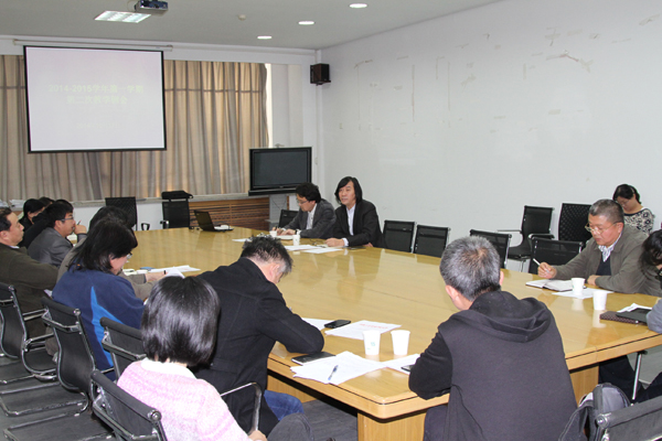2014年10月17日(周五)上午,2014-2015学年第一学期第二次教学例会在长清校区教务处会议室召开。副院长苗登宇,教务处处长孙磊,教务处副处长、艺术与设计实践教学中心主任张伟、教务处副处长李蓉参加会议。会议由教务处处长孙磊主持。