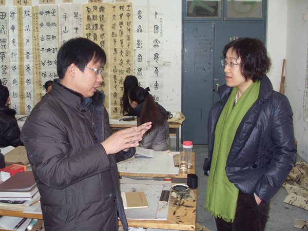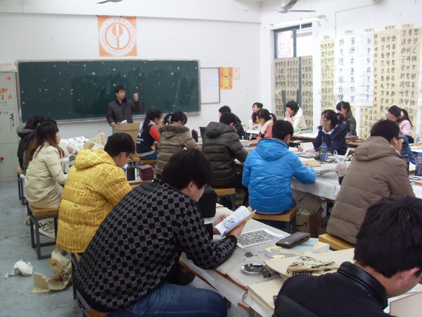 2013年12月25日,副院长李新来到长清校区一号教学楼造型艺术学院教室,听取了杨国栋老师的《古文字学》专业课。