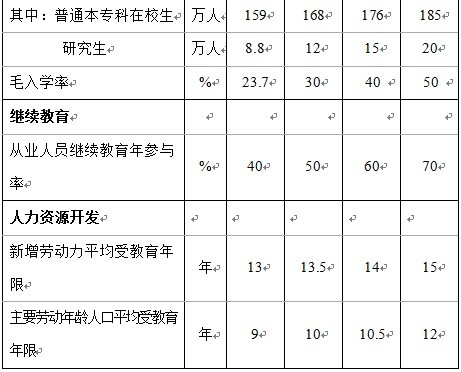 教育事业发展及人力资源开发主要目标
