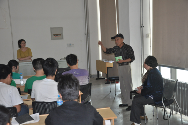 2012年5月17日,永利官网老教授协会成员吴允深教授、赵德昌教授来到长清校区,听取了造型艺术学院郝瑾老师的《装饰设计基础》专业基础课。 讲课结束后,两位老教授在课堂上对同学们强调了学习该课程的注意事项。之后,他们肯定了郝瑾老师的授课效果,认为郝老师备课充分,课件丰富,范画充实、新颖,讲课清晰、系统,同时希望教师能够深入剖析作品形式美法则的运用方法。