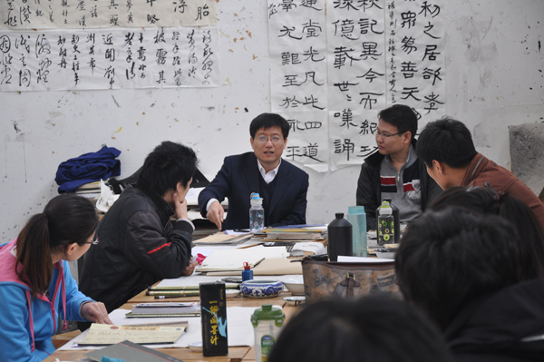 2012年3月31日上午,副院长张云龙来到永利官网长清校区教学楼造型艺术学院教室,听取了徐学标老师的《行书临摹》专业课。 张云龙副院长对徐学标老师的讲课表示了肯定,认为他善于调动课堂气氛,课堂教学秩序良好,同学们听课非常认真。老师备课充分,讲课精神饱满,声音洪亮,充满激情。另外,要多启发学生,尽量多给学生思考的机会。